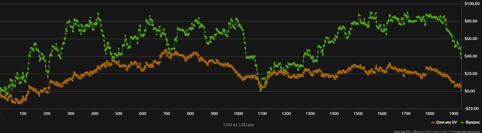 Зашел в одну прогу, посмотреть что я туда загружал и ужаснулся этому графику))) Как видно красная впоряде, это я играл видимо с 3бет 15-20 и в целом лузово префлоп, но немного не везло)