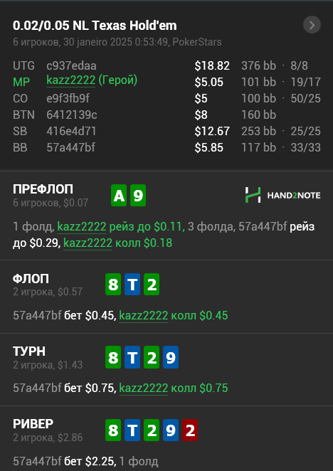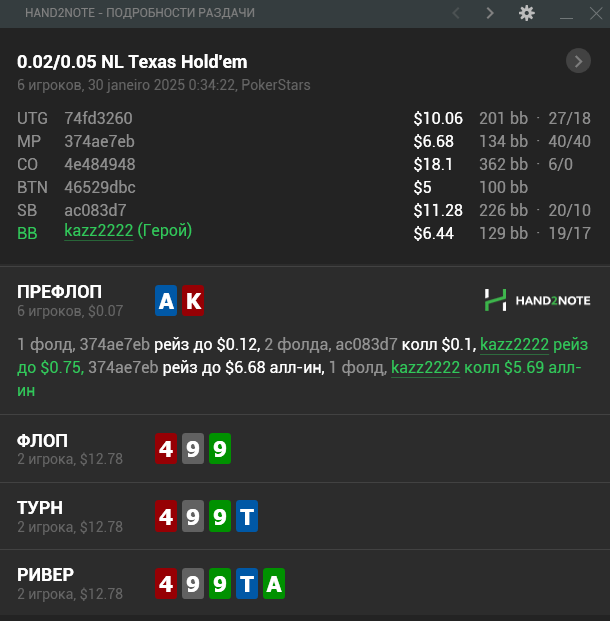 Хочу мнения по одной раздаче узнать. Сейчас спрошу у новомодного Deep Seek , а потом сопоставлю все три-его, ваши и мое. Что в итоге получится, не знаю.