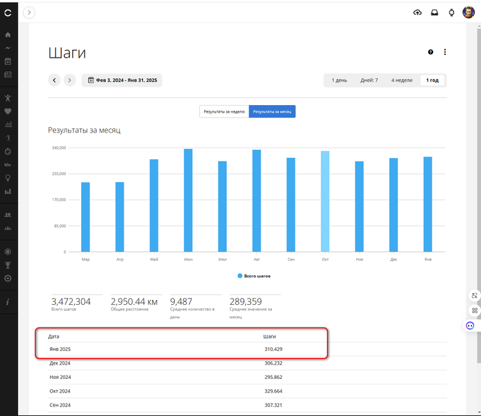 "Ставим" по 2025р, цель - пройти с 01.01.25 по 31.01.25 включительно 310 000 шагов.