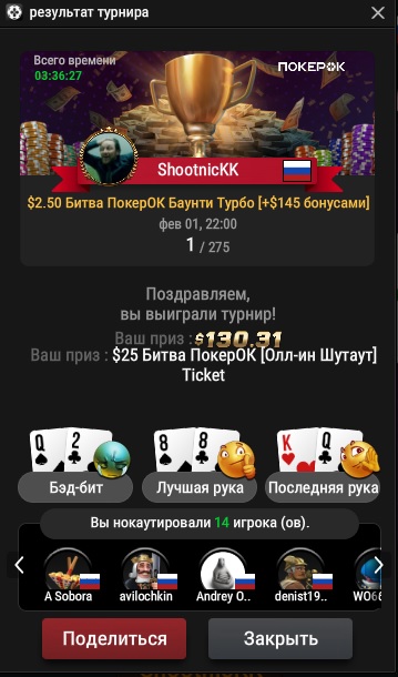 На данный момент в нём осталось 4 человека и чипак - фиш, который QJ в АК у меня выиграл) Покер такой покер.