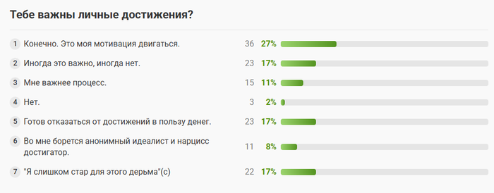 Больше всего меня интересовала статистика из четвертого пункта. Я предполагал, что значение будет на уровне погрешности, так оно и вышло. Все-таки, для большинства сложно двигаться по жизни без ачивок.