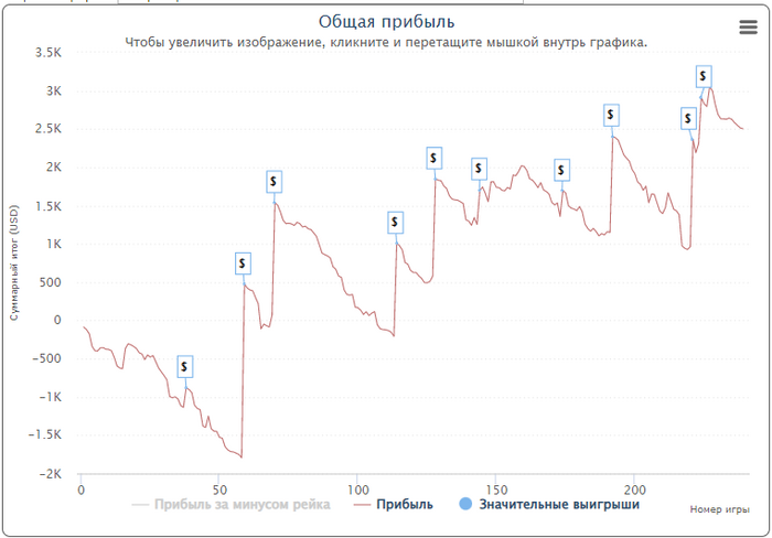 Серединка ноября выдалась тоже не из лучших. Хоть и были заносы, все равно умудрялся минусовать. В основном заливал деньги на верхушке загрузки (109-215).