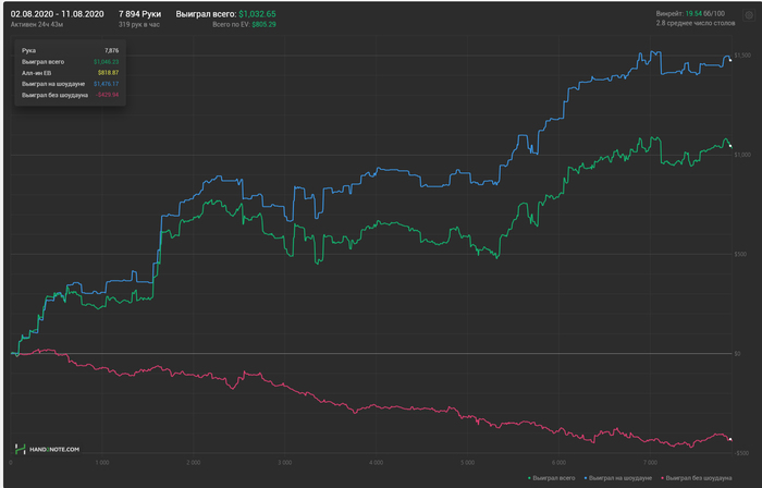 - Играю мало, но хорошо. Половина профита с нл50, половина с нл100 - Делаю важные дела по ресерчам и перестроению игры. - Параллельно снимаю и ретуширую свадьбы, с которыми окончательно расправлюсь к началу сентября(это занимает около двух суток в неделю) - Экспериментирую с тем, чтобы спать еще меньше, но похоже уже подошел к пределу организма