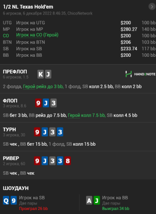 По сдачке - изи пихаем префлоп и забираем мёртвые бабки. А по сыгранному - никто за миллиард лет не сфолдит флоп. Даже ты.