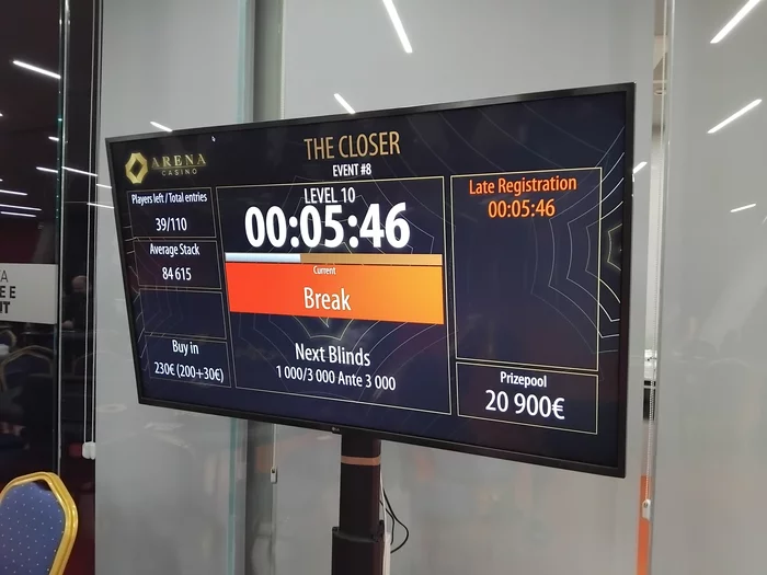 Последний турнир серии. Клозер за 230. С ним вышло забавно : жена замазала сыграть свою подругу, которая интересуется покером, она замазала жену, которая едва знает правила, и вдвоём они замазали меня))