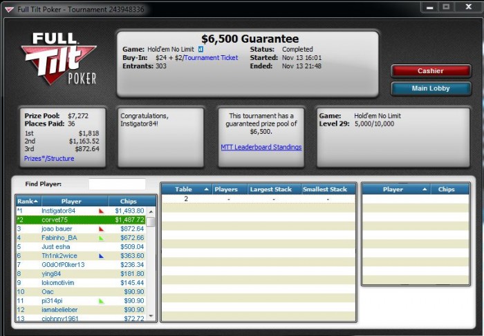 PokerStars - $2+$0.20|30000/60000 NL - Holdem - 6 playersHand converted by PokerTracker 4corvet75 (BTN): 1,090,218.00bardaks86 (SB): 989,940.00AtrophiedFin (BB): 1,094,558.00