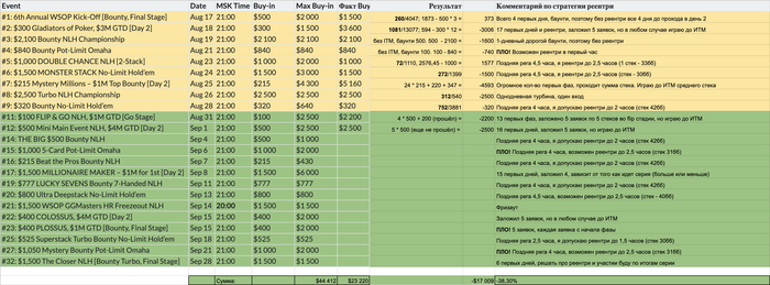По деньгам минус умеренный и, по большей части, сформирован загрузкой WSOP'ов.