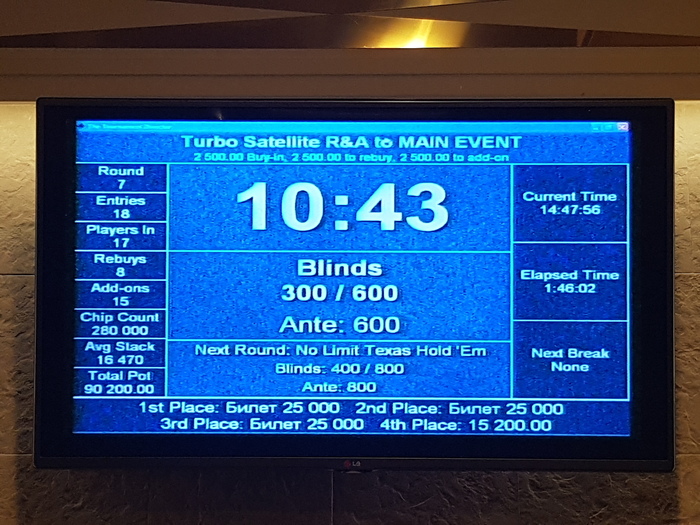 11:00 Satellite to MAIN EVENT по 2.500₽ GTD 2 билета. 14:00 Satellite to DEEP STACK по 2.000₽ GTD 3 билета. 17:00 Турнир DEEP STACK по 15.000₽ GTD 600.000₽