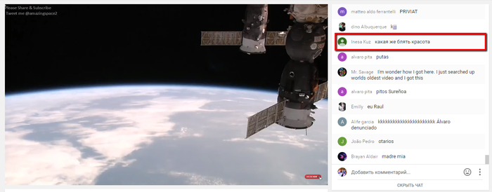 Самое интересное, что не понятно кому адресовано это послание. Либо девушка настолько восхитилась видом Земли из космоса, что не смогла сдержать своих эмоций