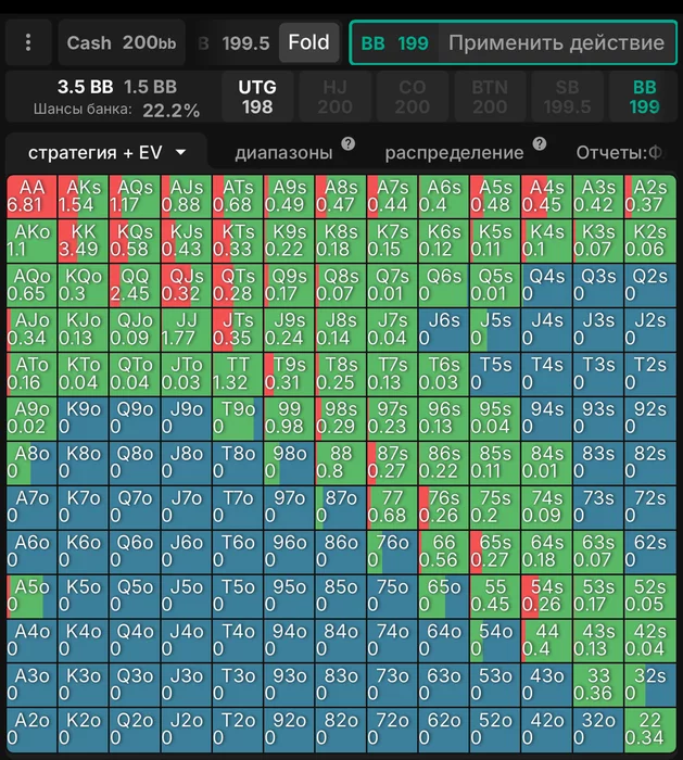 Пока на ночь изучаю уже с недельку в солвере игру в 150 и 200 бб стеках -ЭТО ПРОСТО ТЁМНЫЙ ЛЕС. 3 беты нужно по-другому строить, чтобы адекватно защищаться на 4-беты,а не криво,ну и + СС побольше можно позволить (наконец-то у меня будет впип больше 21!😂),в общем ,для меня это новый мир пока,ну в теории уже +- позапоминал общие тенденции, буду внедрять в игру