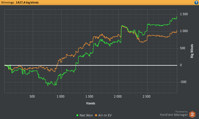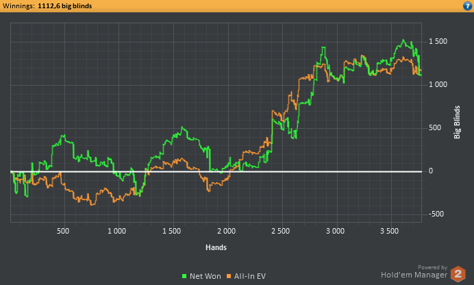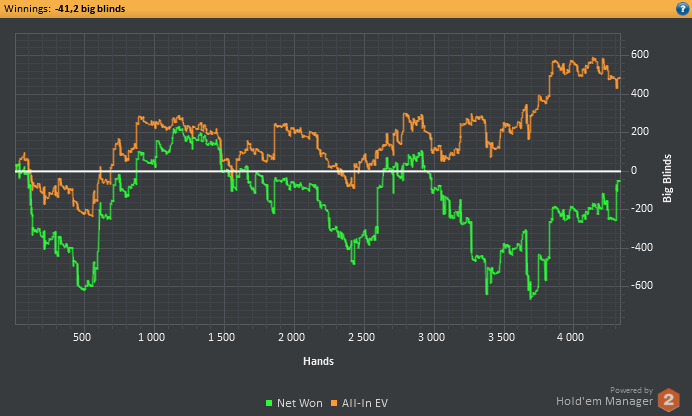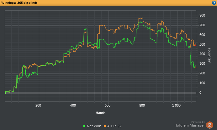 0 флопов против оленя с 45 3бетом, и 15% в ривер на 2 с небольшим стека под конец. Классика. В клипах снова одно нытье, не буду даже заливать. До связи, всем спасибо за просмотр.