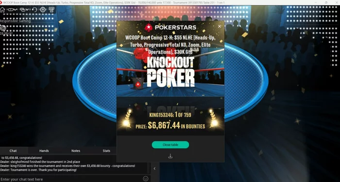 В тотал ноках 65% финалок выиграл. В мтт 322 выиграл и 268 проиграл. То есть примерн 55% побед.