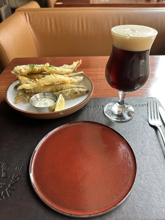 Посидел в одно лицо в бельгийской пивнухе Brasserie 0.33. Выпил пару литров темного пива, 100 водки и две настойки. Лопал корюшку и суп из белых грибов. Корюшка, сказали, с Сахалина, не с Москвы-реки. В целом, все очень среднее. Выбирал чисто по близости к вокзалу.