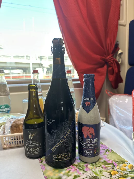 Взял в дорогу немножко бельгийского пива. До сих пор в шоке от отсутствия вагона-ресторана в поезде на Барнаул. Поэтому страхуюсь.