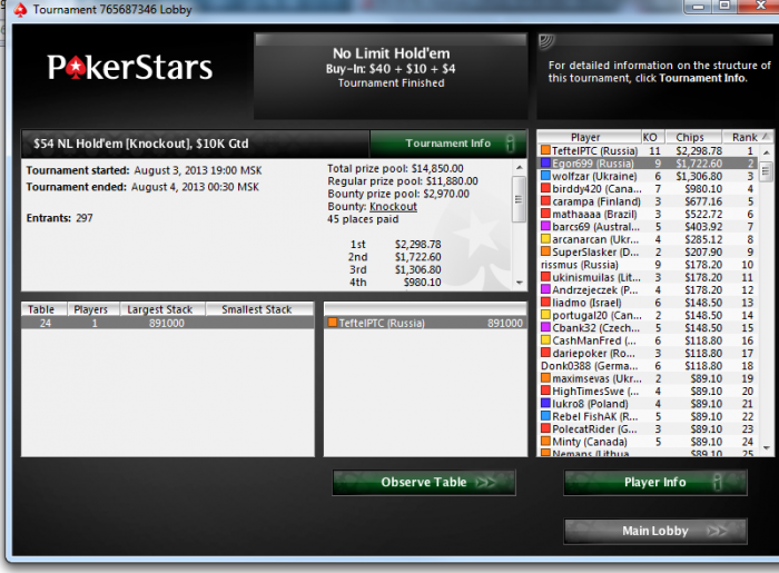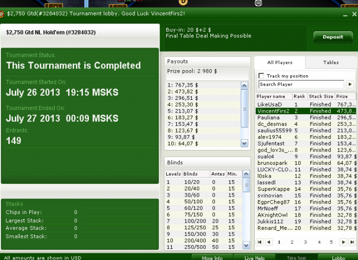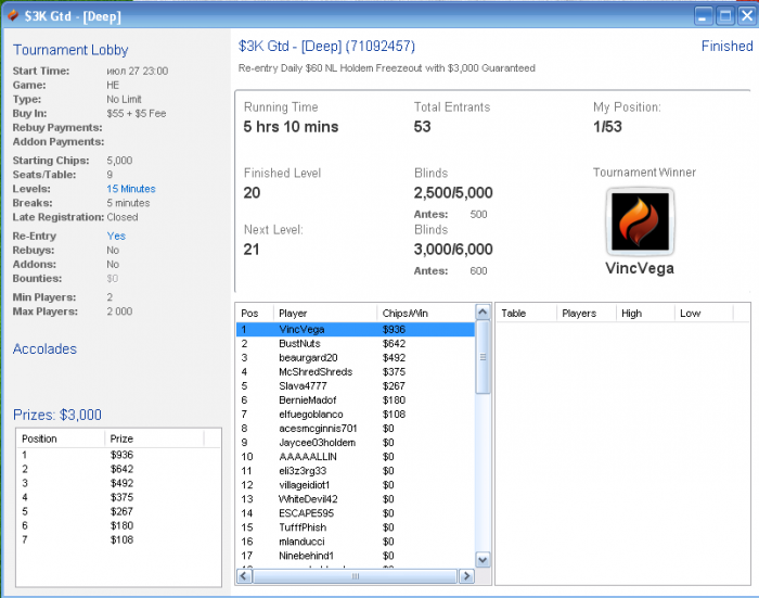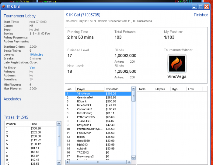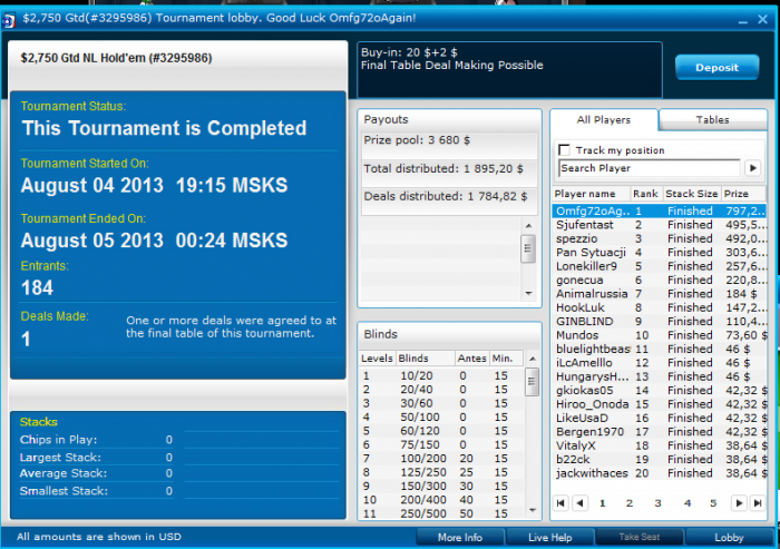 час с лишним ХА играли..самыый эпичный ХА за всю мою покерную карьеру)) заходило просто ужасно..1 из 5 флопов хитил сраную вторую пару, при этом у оппа всегда было шдв, топ пара, трипс..или чаще натс! решающую затащил AJ>QJs, так что все норм