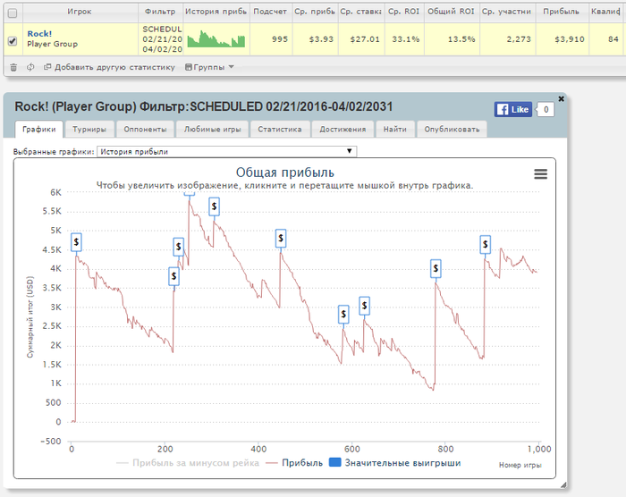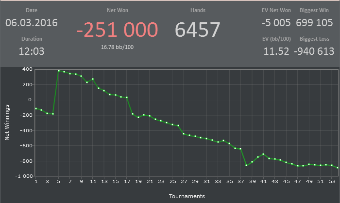 1000 турниров. Итоги. Отыграл еще 1пакет на 1к турниров... На это дело у меня ушло 40 дней или 261 час катки... Можно было отыграть этот пакет лучше, как мне кажется, но имеем что имеем. +3700$ Далеко не лучший результат, да и я предполагал, что на более высоких лимитах меня получше встретят, но увы... Винрейты: