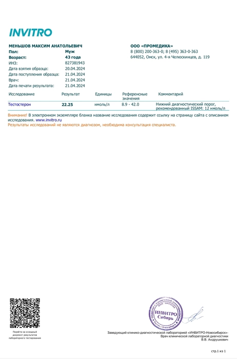 Я могу сдать анализ. Результат мне интересен самому. Но в случае своего низкого тестостерона писать ничего не буду.