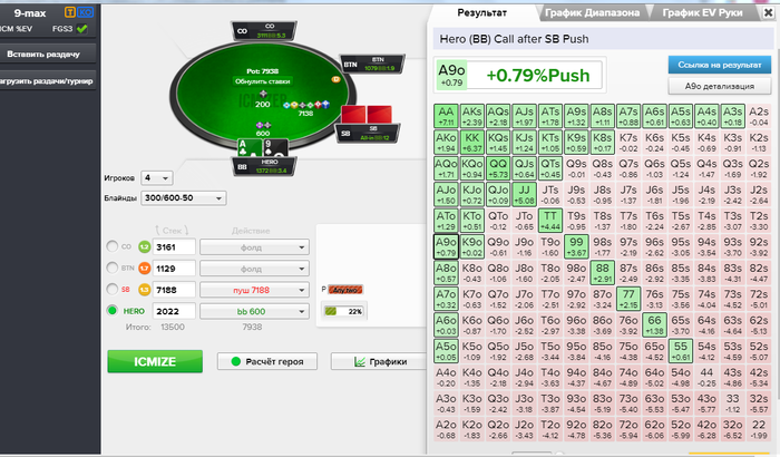 Ну там у чела стек ещё меньше, и вылетает через три раздачи, можно и за нок побороться. Ну и диапазон колла тут точно сверхлузовый, может, я чего-то не понимаю, но на Q6o или на Q3s, или на тех же тройках или T9o тут точно нельзя закрывать