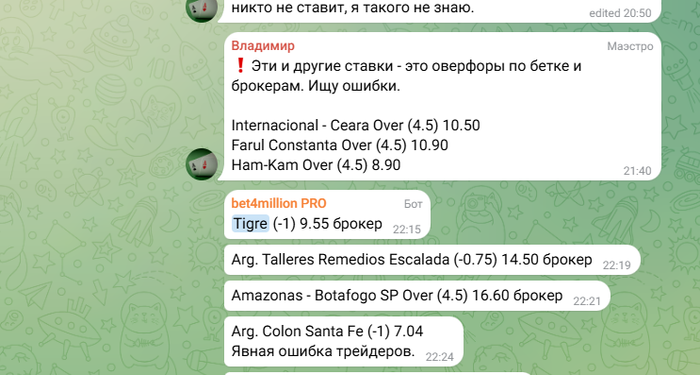Я могу вам пересылать в личку ботом ставки из чата, чтобы вы их постили здесь в отдельной ветке от моего имени. Но у меня постить их на форуме времени нет, а API не предлагается. Товарищ выше об этом просит. Я готов пойти вам навстречу.