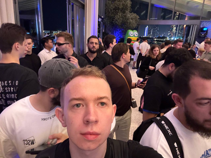Но вообще выбор напитков был больше, куча разных коктейлей алкогольных разносили по ивенту всё те же пакистанцы в смокингах, но я ниче не пил. Я не чувствовал себя комфортно, чтобы употреблять алкоголь. Я был один в незнакомом городе на криптотусовке, а такие места это отличное место для скамеров всяких, поэтому был немного на осторожничах.