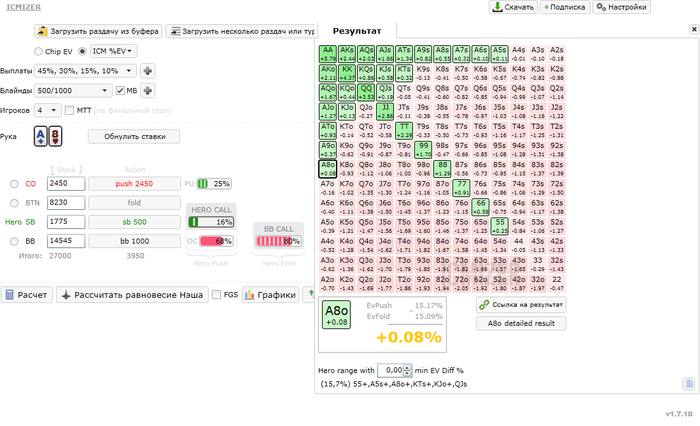 получаю ссылку http://www.icmpoker.com/icmizer/#wUbQ (там включена icm-модель, хоят в вин-клиенте пользовался чипев бб)