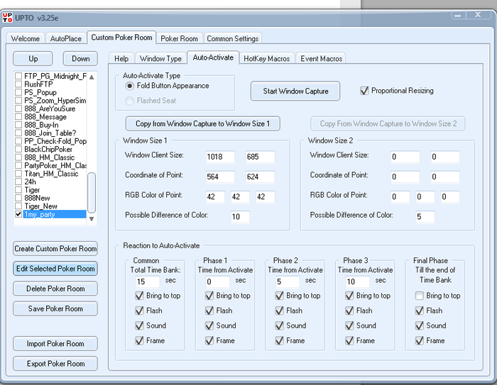 1. Для Auto-Fold не обязательно делать два клика. Два клика нужны если галочка пре-фолда и кнопка Фолда расположены в разных местах, а вы бы хотели, чтобы хоткей срабатывал в обоих ситуациях. Убедитесь, что вы запускаете покер-рум от имени админа, иначе клики не доходят до стола.