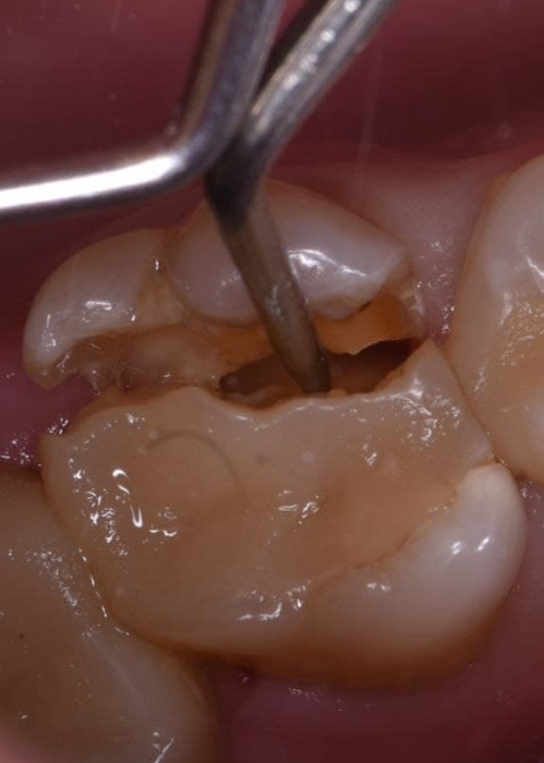 Пациент не испытывает боли или дискомфорта, кариес со временем "подъедает" зуб и дальше пломба вываливается, а зуб уже весь съеден кариесом и от него ничего (кроме стенок) не осталось. Такой зуб тоже можно отправлять на удаление.