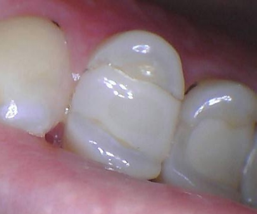 Живой, интактный (без пломб) зуб, либо зуб с маленькой пломбой - винир
