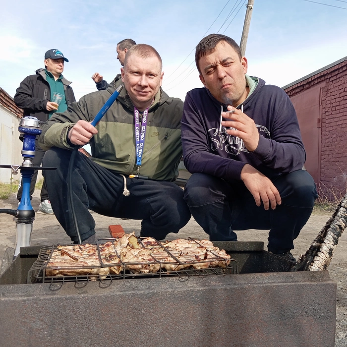 Кореша выдернули на шашлыки в гараже.