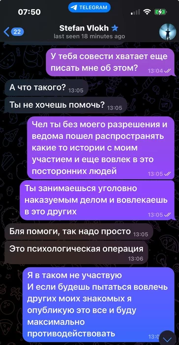 Стеф сам пал так низко,что на каждый выпад или несогласие просто сливает личную инфу и угрожает людям. Не удивлен что он постоянно удаляет переписку,видимо в каждой с них есть за что притянуть его самого. Я всегда восхищался им,его картиной мира и нестандартным взглядом,но с каждым днем надежда видеть прежнего Стефа тает,пока наблюдаю лишь за истеричным ребенком. Какие нахуй джины,ифриты,разговоры с Богом и прочее…