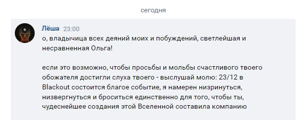 решил зайти сбоку и начирикать тираду одной интернет знакомой. чуваки, как оцениваете вероятность успеха по шкале от 1 до 10?)