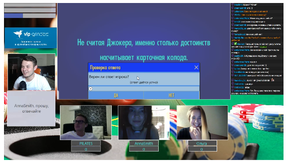 Так же я прошу выключить всё, что может мешать игре, вместо этого Аня начала общаться в чатике, тем самым проявляя неуважение вообще к участникам, ведущему и зрителям.