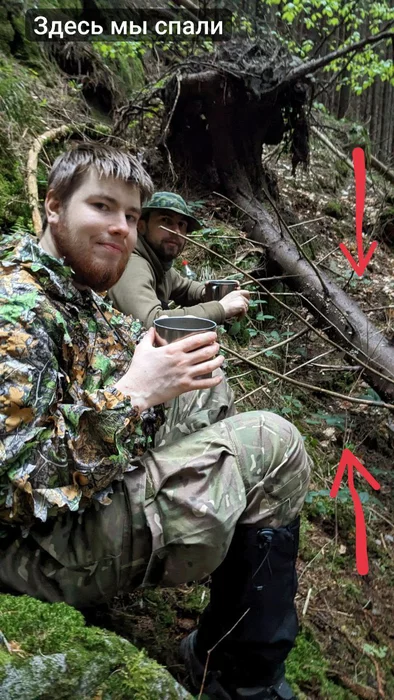 Вечерело, нам оставалось пересечь дорогу, благо по карте возле нее был лес. Дойдя до края холма мы увидели, что леса уже как год здесь нет. Только редкие кусты. Пока ребята сверялись с картой, я решил сходить на верх холма на разведку. Наверху ситуация была не лучше, весь склон на котором мы находились был вырублен. Я начал спускаться, чтобы "обрадовать" этой новостью команду. Спустившись на 30 метров я начал переживать, ведь напарников не было видно. Пройдя еще метров 10 я еле разглядел в двух поросших мхом камнях двух человек, настолько хорошо камуфляж скрывал ребят, изучающих карту.