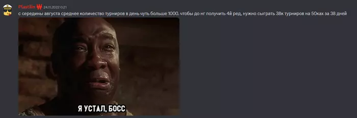 Где-то на фоне все чаще звучала мысль, что можно и о деньгах позаботиться, по дистанции успеваем. Однажды ночью вместо зарубы против двух регов на 50, заглянул на 25. И отыграл там 1к турниров в 29 фишек. Потом за 1700 турниров в 28 (дефолтные хорошие результаты 21-22). Было тяжело морально идти страдать в слабоплюсовой катке, когда под боком было такое. Лишние 7к турниров на 25м лимите обернулись настоящим адом после 20х чисел декабря. Все, о чем были мысли - быстрей бы это закончилось. Считал каждый день, вычитал каждые сто турниров до окончания. Когда 31 декабря мою жену поздравляли с др ее родители, каждый несколько раз переспросил, а что, Женя не работает сегодня что-ли? Пиздец.