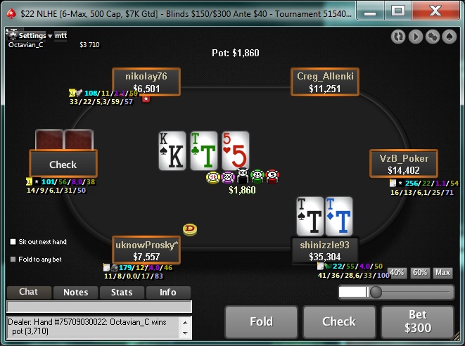 SB: 31,000 (31 bb)UTG+2: 10,906 (10.9 bb)