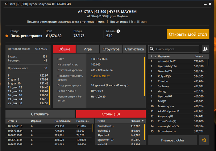 Если с какого-то стола не вернулись, напишите на почту support@redstarpoker.eu, пожалуйста