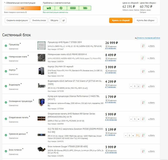 6) В каком городе будете покупать железо. Желаете ли купить в заграничных интернет-магазинах. Если у вас есть предпочтение по интернет-магазину, то дайте на него ссылку, так как нужно будет посмотреть асортимент. Нет каких-либо предпочтений, можно ситилинк или днс