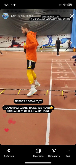 Первая тренировка. Лето 2021. Иду на стадион. В рюкзаке старые кроссовки с дыркой на большом пальце и хлопковая футболка. По пути встречаю подругу, которую не видел много лет. Что-то всколыхнулось внутри, воспринимаю это как хороший знак. На стадионе тренер посмотрел на кроссовки и сказал, что мы в таких тут не бегаем. Нифига вы цацы, думаю, что в новых надо бегать что-ли?