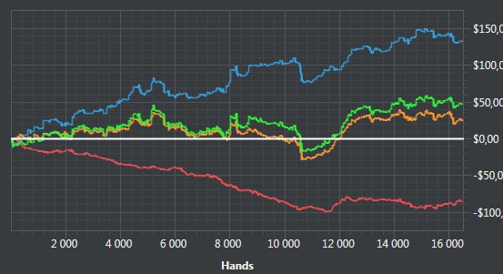 Супер! брал курс из 5 занятий, Евгений дает максимум информации, очень доступно и, что самое главное, без воды, с каждой лекцией можно работать самостоятельно минимум неделю, а то и две. Играю нл5-10, график на нл5 приблизительно с момента начала занятий, до этого была стабильная игра в слабый минус. Тоже обязательно вернусь для разбора базы.