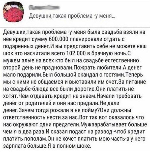 Причём я когда женился, настаивал на том, чтобы просто расписаться и всё. Но родители бывшей настояли на банкете с тамадой и конкурсами. И сказали, что всё оплатят. Ну ок, ваш праздник значит.