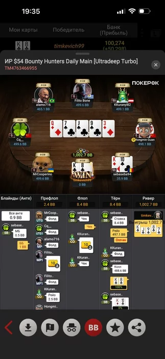 Timkevich99, Тимур , от количества скриншотов - сумма блинов на них не растёт , если ты не знал)) А в целом мне оч нравится, вот это тонкое искусство вельюбета на 200бб в глубоких стеках !)