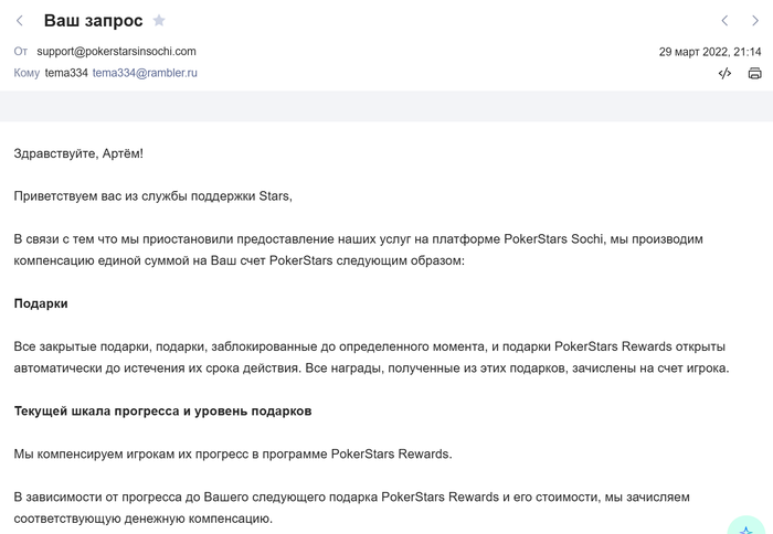 Кого затронет? Все аккаунты с российской пропиской, которые не меняли страну в последние три года. Можно ничего не предпринимать, а просто скачать клиент PokerPlanets и восстановить пароль, указав в качестве логина свою почту с аккаунта Старзов — все деньги должны быть на месте. А можно до 6 апреля написать в поддержку PokerStars и попросить вывести деньги через Luxon.