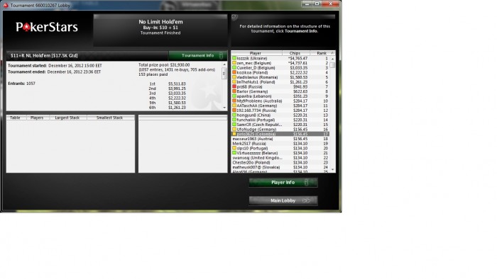 prz68 @ 7.12.2012 Впереди у меня несколько турниров ФТОПС и несколько неплохих пакетов из обычных турниров (сегодня+воскресенье). Надеюсь получится вывести график обратно на отметку 14-15к профита. А еще лучше если уже случится большой занос (хочу тужурку, блеать!)