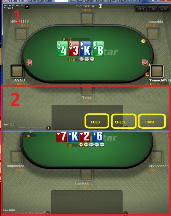 Часто возникает ситуация, когда одновременно идет мой ход на первом и втором столе. На первом столе надо сделать ход, но когда курсор опускается ниже горизонтальной верхней красной линии (верхняя граница второго стола, который на заднем фоне), то на передний фон выходит 2й стол и приходится сразу делать ход на 2м столе, хотя на первом, к примеру, большой банк/сложная раздача или заканчивается тайм- банк и в итоге переключаешь внимание на второй стол, чтоб там быстрее сделать ход и пойти на 1й стол.