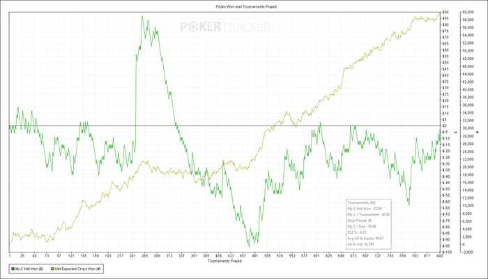 сыграй хотя бы 1к турниров и посмотри по ев фишки а не по факту, думаю больше 80 наврятли будет
