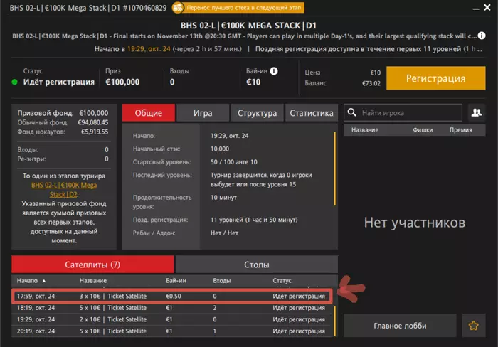 это однозначно баг, по мне так любой сателлит должен подходить к bhs турниру, если он указан в лобби турнира, а то так еще попробуй найти какие именно сателлиты нужно играть, что выполнить задание.
