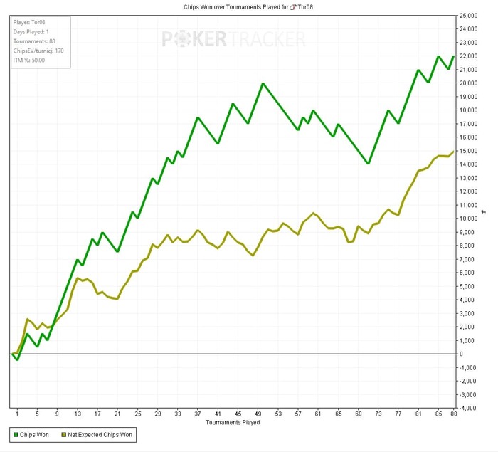 Сегодня решил покатать чисто 20-ки, поле было шикарное и выиграл ровно половину турниров! Также было 3 шт. х8 взял все.