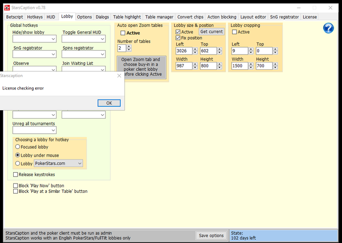 насколько я понимаю, при запросе лиценции при логине в покерный клиент зависает кепшн