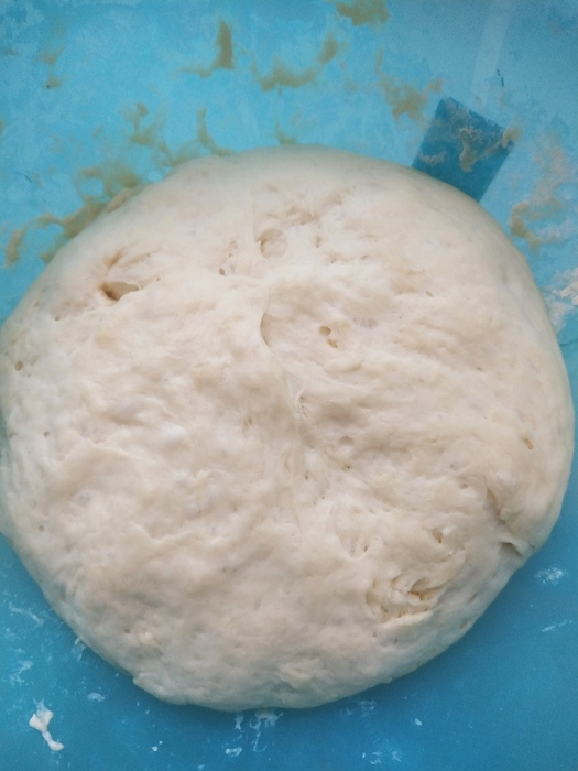 Делаем тесто. Смешиваем слегка подогретое молоко с солью, сахором и дрожжями. Далее, маленькими порциями добавляем муку.Месим тесто. С мукой не перебарщиваем. Под конец добавляем немного растительного масла, немного жмякаем тесто, накрываем крышкой и на час отправляем в теплое место.