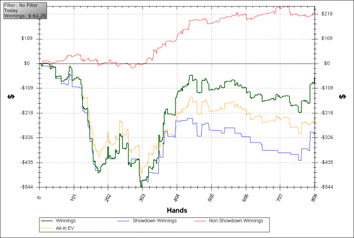 Хотя, возможно, эта раздача показалась мне нормальной только на фоне пары других, которые я сыграл безнадежно. Не выкладываю их, т.к. интересного там мало, играл чек-колл, давал доехать оппонентам и не выбрасывал на ривере.